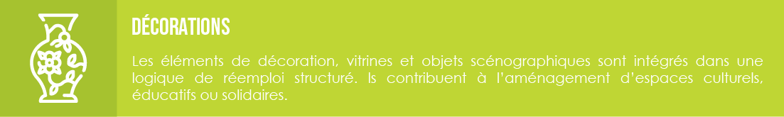 Notre démarche repose sur la prolongation du cycle de vie d’éléments encore exploitables. En intégrant notre réseau solidaire, vous contribuez à leur réemploi et à leur revalorisation au service de vos actions socioculturelles.